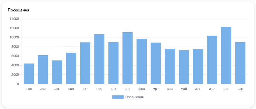 - Посещения: количество пользователей геосервисов, зашедщих в карточки компании.